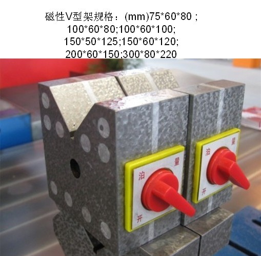 磁性V型架:用途同一般V型架。磁力V型架的優(yōu)點:V型槽部分及底部均帶有磁力,使用方便。